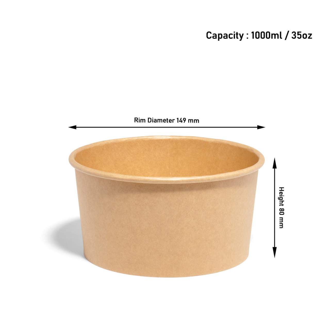 1000ml Kraft Rectangular Paper Bowl - 300pk