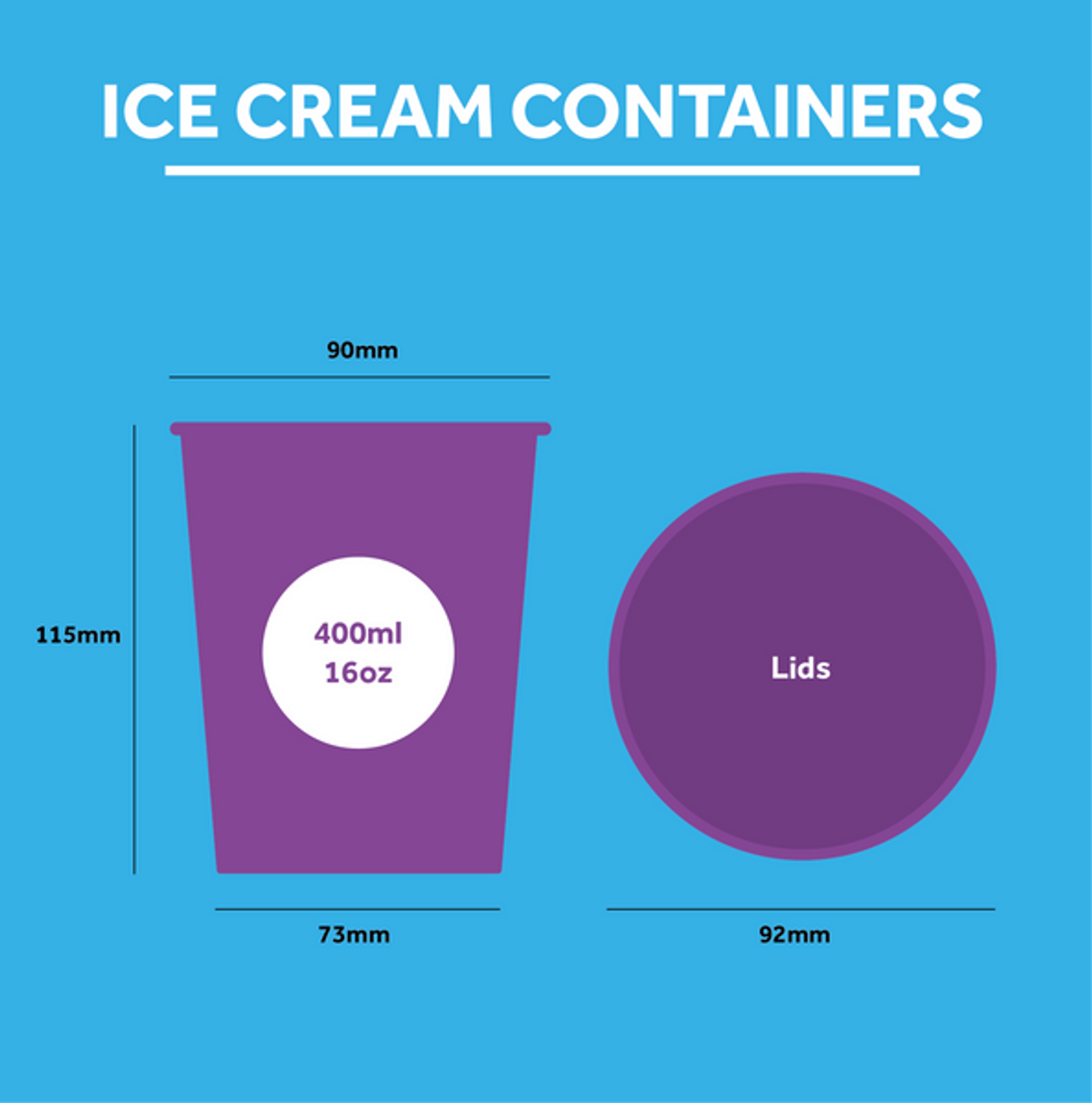 - Chose of 2 sizes: 12oz, 16oz ice cream tubs