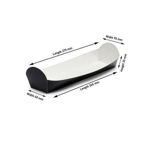 These trays are typically used for serving baguettes and hot dogs, but the thick board can accommodate a variety of both hot and cold foods, with plenty of sauce. The open top design allows for quick service, perfect for the busy caterer.