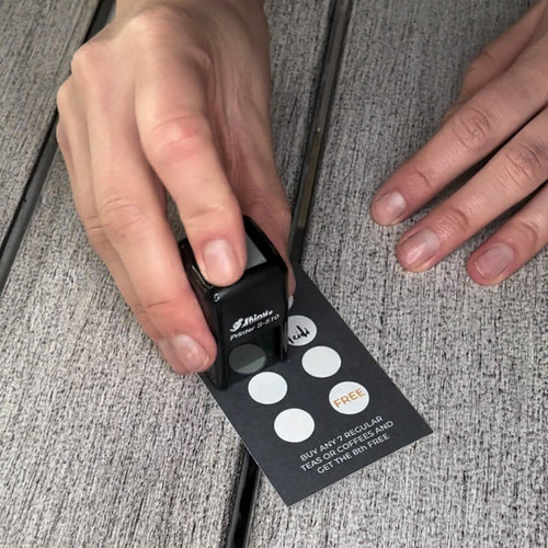 A simple, cost effective and speedy way to build your customer loyalty. Stamp your loyalty cards with your very own custom branded loyalty cars self inking stamp. Popular with cafes, restaurant, bars, hairdressers and many more.