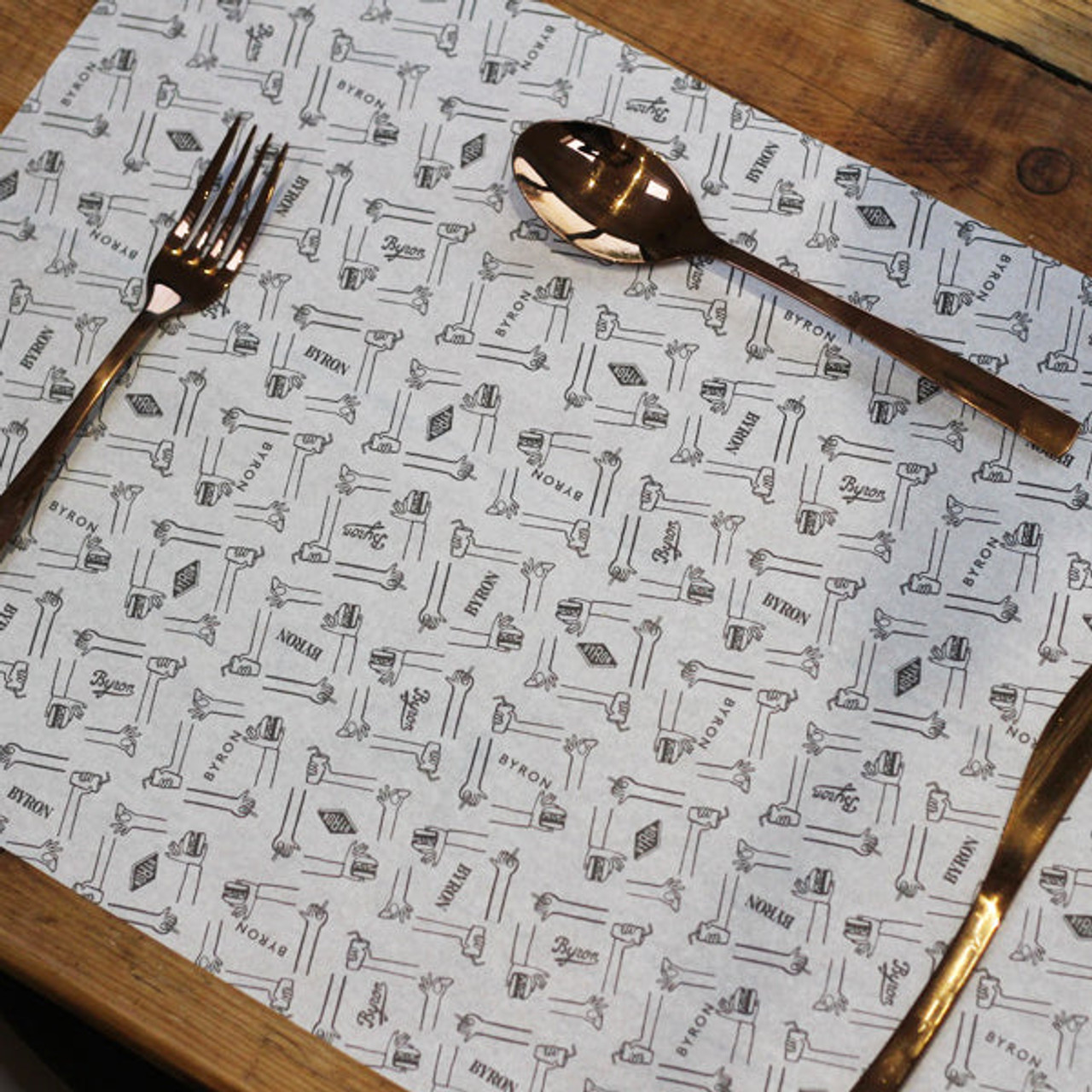 Custom Printed Greaseproof Sheets. Size: 210 x 148mm