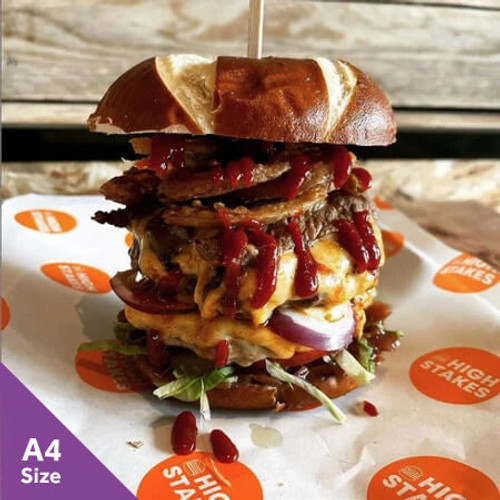 Express greaseproof paper within 5 working days from approval of artwork - cut off 12pm. Ideal for menus / place matts / food liners / street food wraps / pubs / chip liners / cafe / restaurants / pubs / farms shops / butchers and more! PackGenie manufactures our express printed greaseproof paper using white 38gsm Natural greaseproof paper. They are biodegradable and compostable - Freezer proof, oven proof and microwave proof. Ordering online is easy. Once you have selected your sheet size from our sheet size options, simply select the options from the dropdown menus and your bespoke price will be clearly displayed.