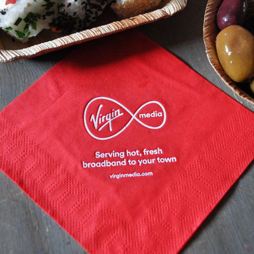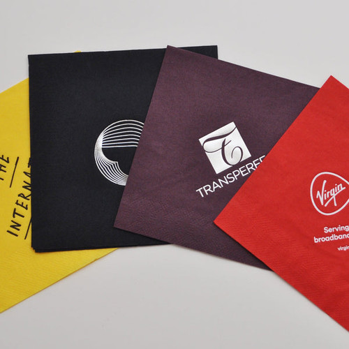 If your planning an event or private function for your business then printed lunch napkins are perfect. Printed napkins are a cost effective way of adding that finishing touch of quality to any promotional catering event. Our custom printed lunch napkins are 33cm square folded out and are extremely eco friendly; 100% recyclable / compostable and biodegradable. Printed 1 - 2 colour / gold or silver on to a range of soft coloured tissue. See tissue colours available for our cocktail napkins below.