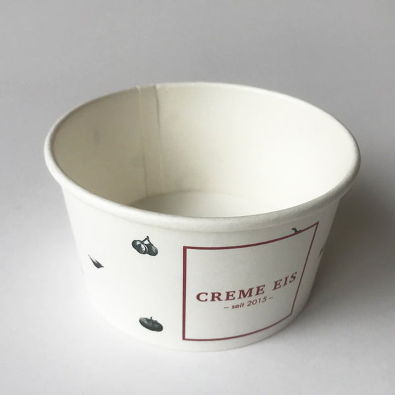 Printed ice cream cups are ideal for showing off your frozen deserts, ice cream creations, Italian gelato, sorbet, popcorn and other treats. Our bespoke ice cream cups are 100% recyclable and sustainably sourced. Screen printed in 1 colour, using food safe inks. In a choice of 11 vivid Pantone colours including: Yellow, Rubine Red, Warm Red, Rhodamine Red, Purple, Violet, Reflex Blue, Process Blue, Green, Black and White.