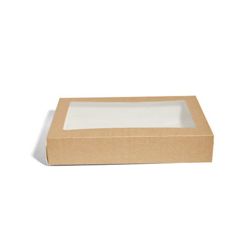 Make your catering stand out with this 25-pack of sturdy kraft platter boxes. High-quality board ensures your contents are securely transported and presented with a film-fronted window. An easy-slide insert makes it simple to take items in and out. Perfect for takeaway afternoon tea, corporate catering and more - serve sandwiches, cakes and muffins with style.