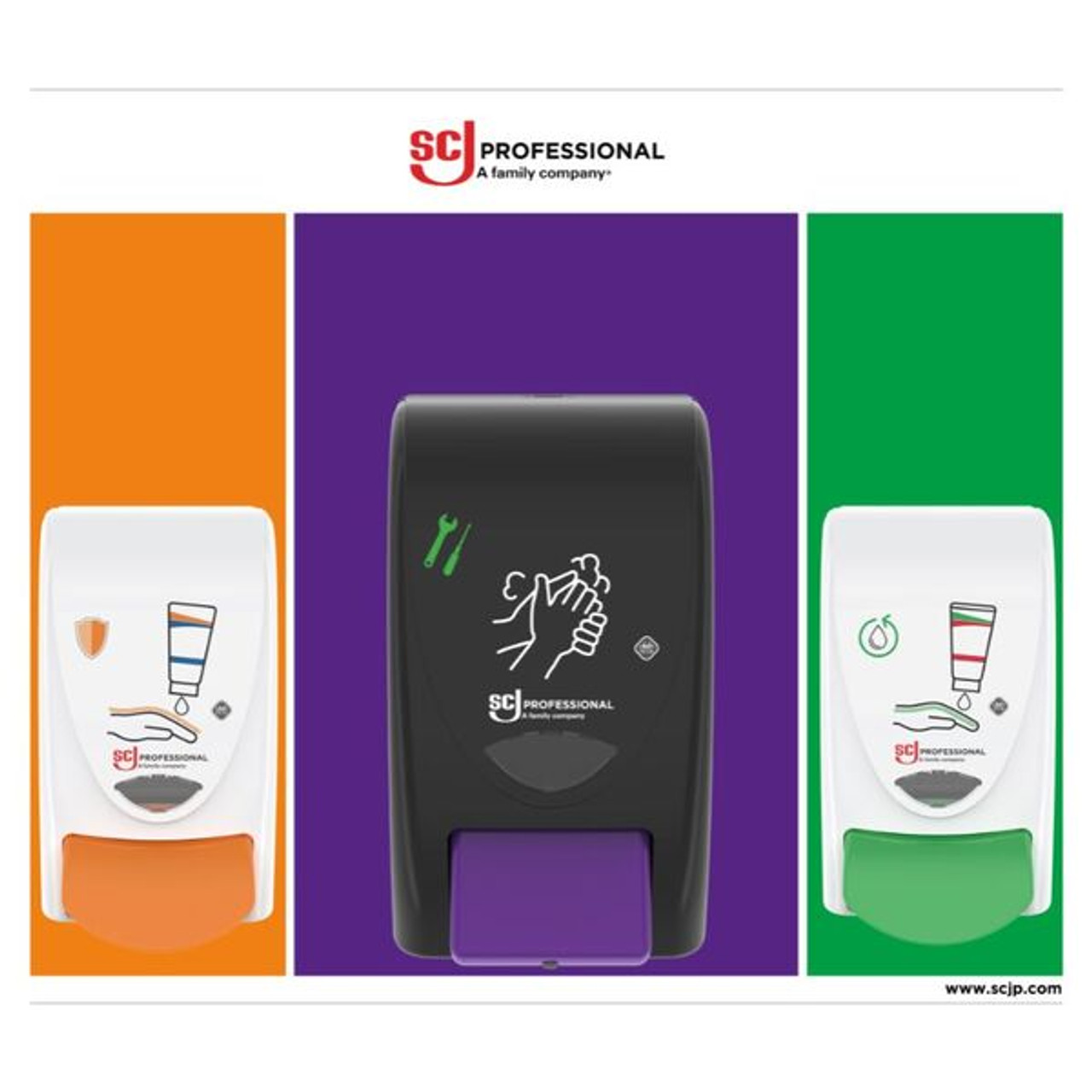 Robust, light-weight board that is ready-assembled with appropriate SC Johnson Professional dispensers. For use with SC Johnson Professional products to create a tailored skin care system. Size: 800mm wide x 570mm high Contains: 1 x Deb Protect 1000, 1 x Deb Cleanse Light 2000, 1 x Deb Cleanse Heavy 4000 and 1 x Deb Restore 1000 dispensers.