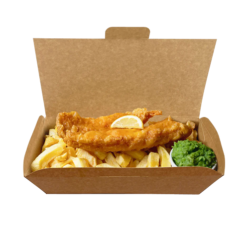 These boxes are typically used for serving fish and chips, but their versatile design makes them ideal for serving a variety of hot and cold foods, from donuts and patisserie items to burgers & fries, to name a few.