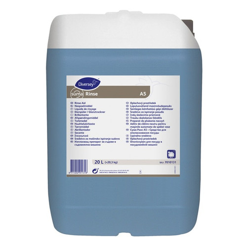 Suma Rinse A5 is a standard neutral rinse additive. It has been specially formulated for use in a wide range of ware washing machines. The product contains a special blend of non-ionic surfactants for rapid, spot and streak free drying on all cleaned surfaces in soft and medium hard water conditions.