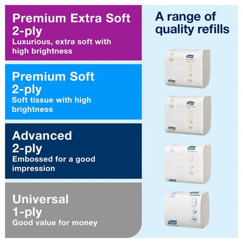 Ideal for low to medium-traffic washrooms that require regular refilling, our Tork Folded Toilet Paper Dispenser comes with an easy-refill function that can be topped up before empty to keep guests happy. Its modern Elevation Design is also guaranteed to leave a positive impression. Hygiene is improved, thanks to the sheet-by-sheet dispensing system that means guests touch only the toilet paper that they take. And with no stub rolls to dispose of, waste is reduced and costs are cut.