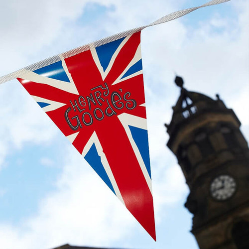 Printed Waterproof bunting is synonymous with summer fetes up and down the UK. Printed in high quality our waterproof bunting is manufactured in the UK, created using materials that are ethically sourced. Strong and durable for outdoor events and is 100% water resistant and the optimal choice for when longer periods of outdoor use are required. Supplied in 10m lengths our waterproof custom printed bunting is sure to catch attention, showcasing your brand or function. Digitally printed in high quality on both sides, available in 5 different colour options: white, black, red, yellow or blue webbing to compliment you message or logo. Our price includes up to 3 different designs printed on front and back.